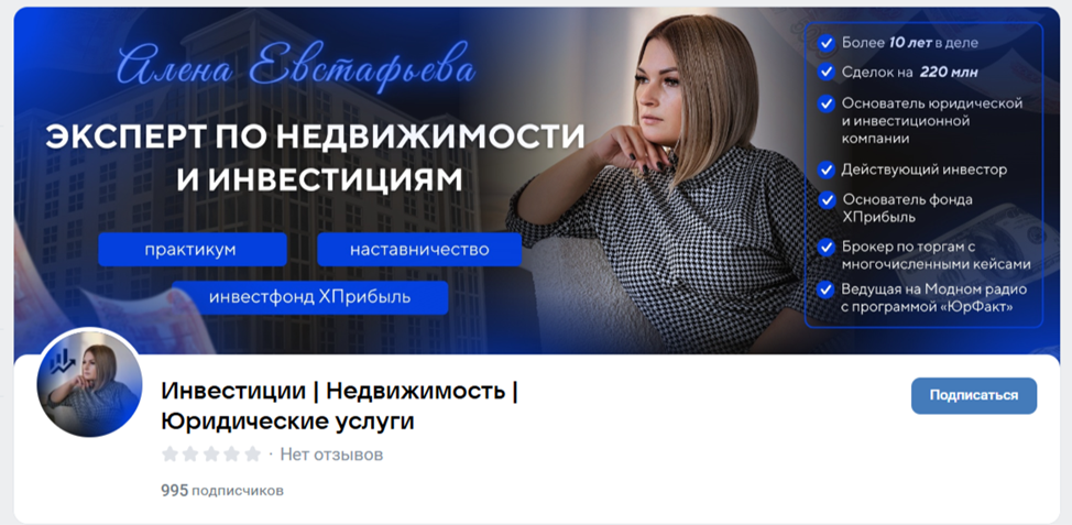 Анализ деятельности Евстафьевой Алены показывал, что качество контента сомнительное. Многие рекомендации предоставляются без обоснования. А реклама быстрого обогащения с незначительными рисками вводит пользователей в заблуждение.