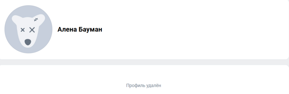 В качестве другого контакта указана страница ВК – Calumny. Здесь инвестор представляется Аленой Бауман. Но эта страница когда-то была действующей, а сейчас удалена, поэтому пользователи не смогут обратиться к автору страницы, если появится такая необходимость.