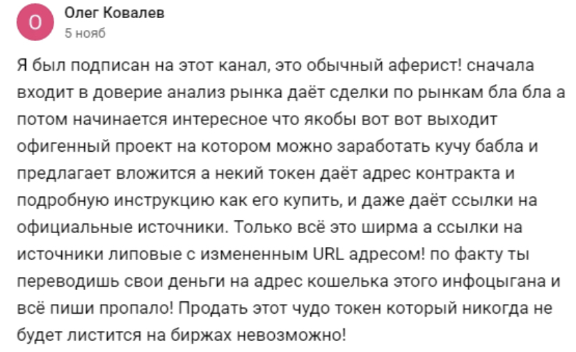 Бывшая аудитория называет владельца Телеграм паблика Бросок Кобры мошенником. Все как один говорят о том, что спокойным контентом с торговыми сигналами автор группы только привлекает подписчиков.