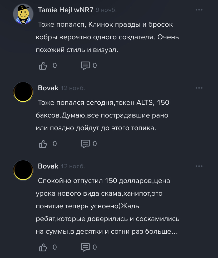 Если вы пытались зарабатывать с помощью данного сообщества и у вас все получилось, либо вы готовы подтвердить, что ТГ канал Бросок Кобры — скам, выскажитесь в комментариях к этому обзору.