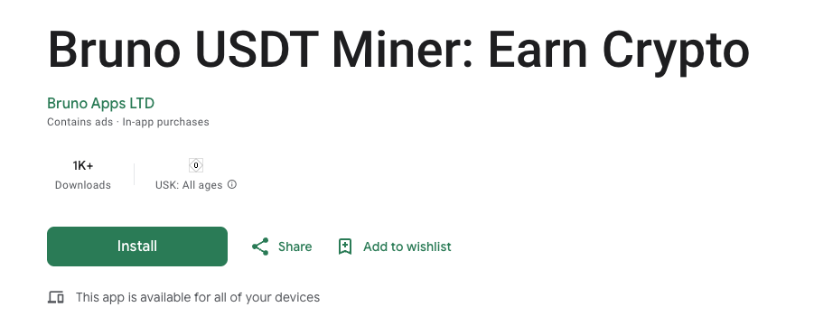 Bruno Usdt Miner – приложение, доступное в Google Play. В нем пользователям предлагают майнить USDT. В реальности стейблкоин не добывается майнингом, что уже говорит о том, что пользователей пытаются ввести в заблуждение. С учетом того, что Bruno Usdt Miner отзывы на независимых площадках не получил, а в самом Гугл Плей к нему закрыты отзывы и оценки – требуется дополнительная проверка работы сервиса. В обзоре расскажем подробнее о нем, перспективах заработка с проектом.