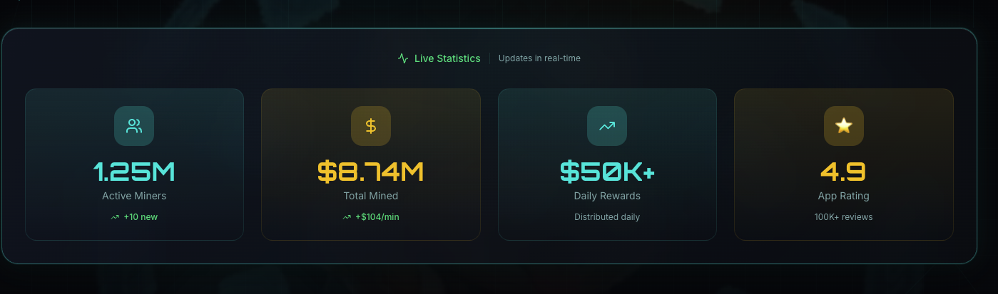 Стоит уделить внимание и тому, что создатели проекта рассказывают о том, что у них более 1 миллиона активных майнеров, а также рейтинг приложения составляет 4.9 звезды на основе 100+ тысяч отзывов.