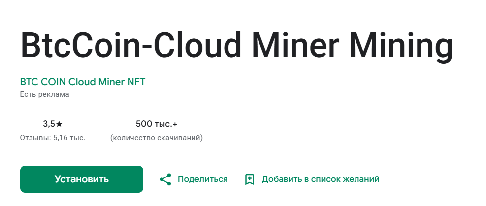 Информации о BtcCoin в сети очень мало. Известно, что приложение было разработано компанией BTC COIN Cloud Miner NFT. Приложение доступно для скачивания в GooglePlay и AppStore. Создано оно специально для майнинга биткоина. В описании говорится, что программа не использует вычислительные мощности устройства, как это можно подумать. Вместо этого здесь применяется облачная технология майнинга. Суть ее в том, что она обрабатывает операции внутри приложения на уровне облака.