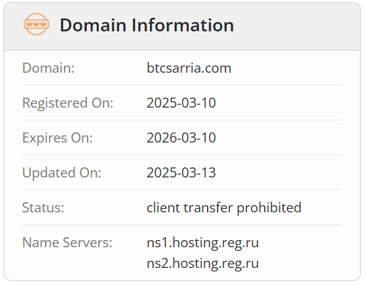 BTCSarria — очередной псевдообменник, который заявляет о лицензии, но не предоставляет никаких доказательств. Домен зарегистрирован в 2025 году, а они утверждают, что работают с 2018-го. Отсутствие реального офиса и лицензии делает их сервис крайне ненадежным. Не рискуйте своими средствами с такими сомнительными проектами.