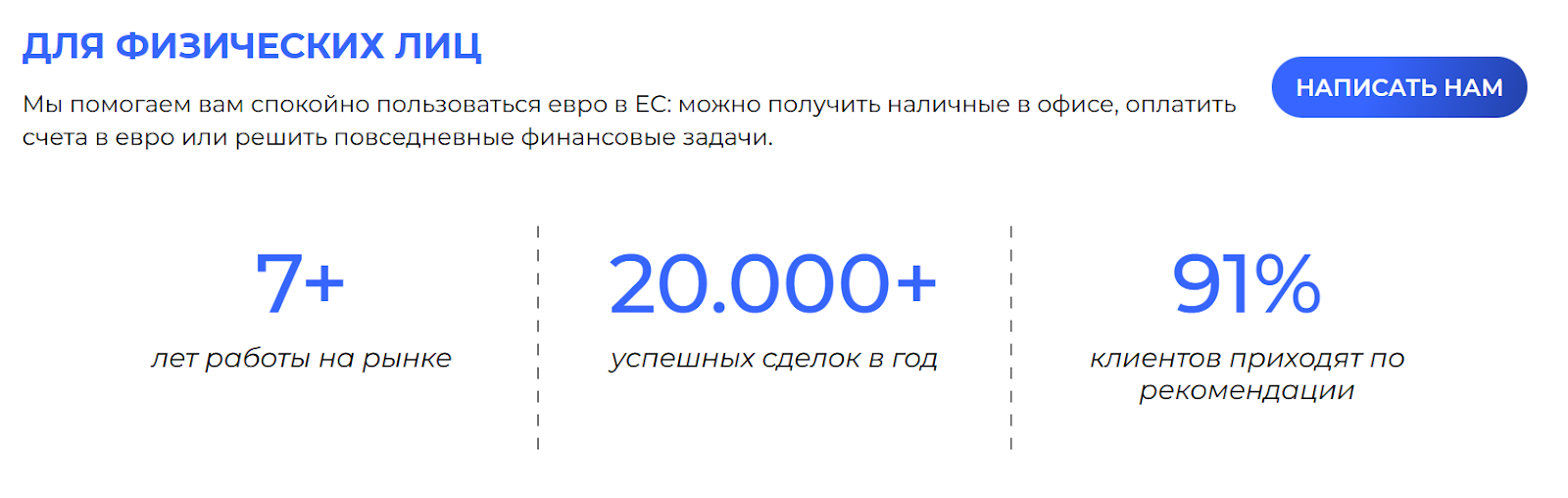 В статистике написано, что сервис находится более 7 лет на рынке, сделок в год было совершено более 20 тысяч, а клиенты заходят или находят обменник по рекомендации в 91% случаев.