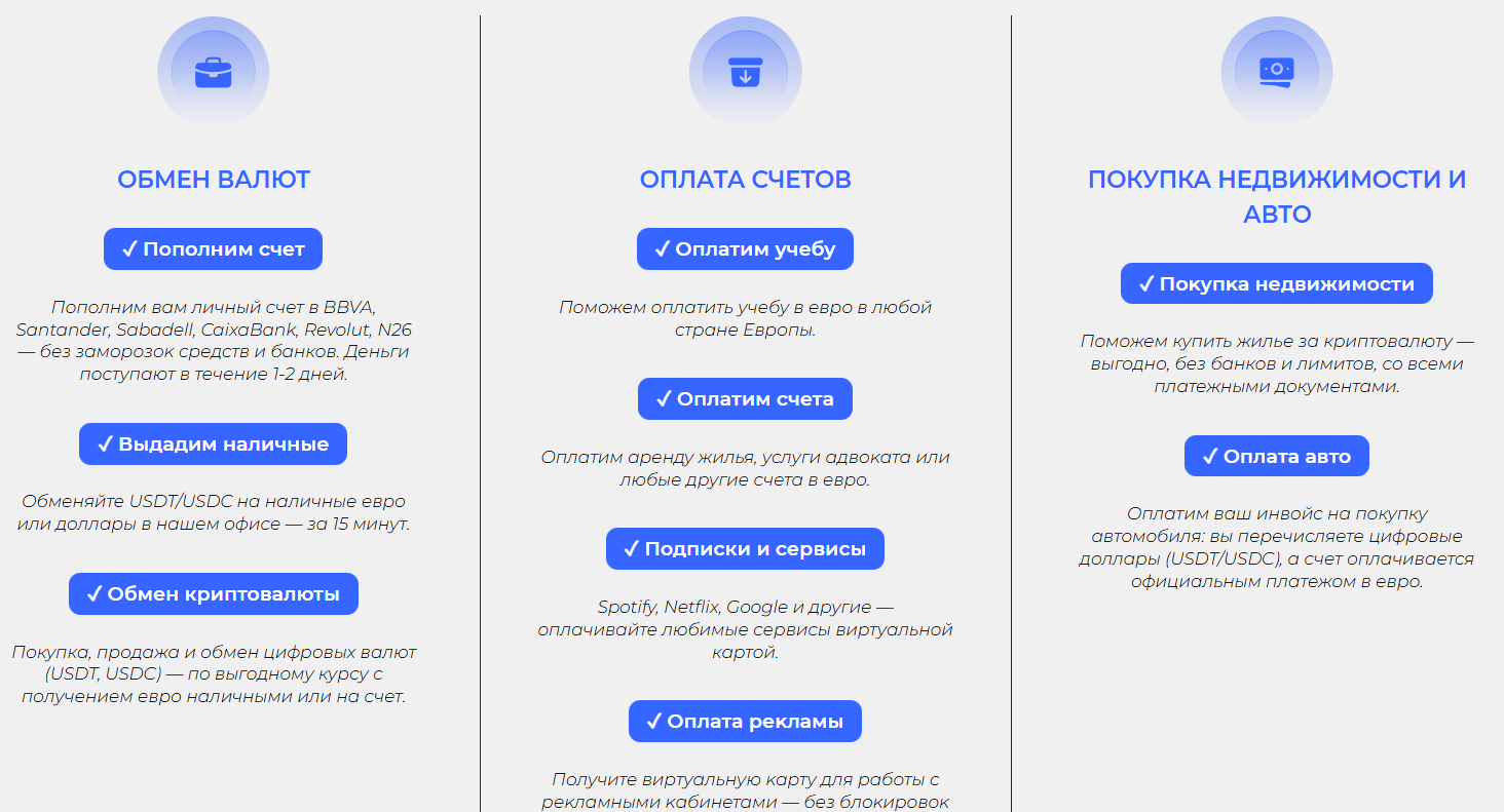 BTC Sarria отзывы обменник не собрал. Связано это с относительно недавней регистрацией сайта в марте 2025 года. Однако разработчики утверждают, что создали проект еще в 2018 году. Отличается обменник тем, что с его помощью можно не только обменивать криптовалюту, но и платить за учебу, купить недвижимость, оплатить подписки и сервисы и т.д.