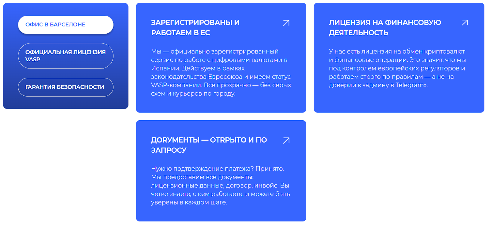 BTC Sarria позиционирует себя как обменник с лицензией и офисом в Барселоне, однако отсутствие конкретного адреса и невозможность проверить лицензию вызывают серьёзные сомнения. Заявления о работе с 2018 года противоречат данным о регистрации домена в марте 2025 года. Отсутствие отзывов и информации о компании, а также несоответствия в предоставленных данных, указывают на потенциальные риски при использовании этого сервиса.