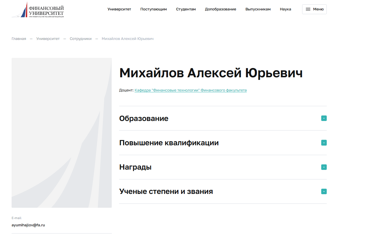 - Алексей является кандидатом наук, а также доцентом университета и может похвастаться академическими заслугами.
