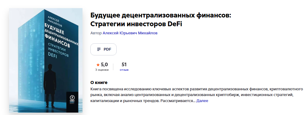 Обзор книги «Будущее децентрализованных финансов Стратегии инвесторов DeFi»: отзывы об авторе Алексее Михайлове и оценка компетенции писателя Alexei Mihailov