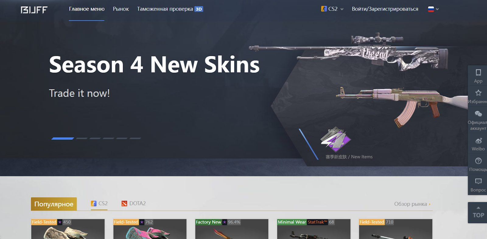 Самыми популярными рынками на сайте Buff 163 являются CS GO, Dota 2 и CS2. Она представляет рынок П2П, на котором можно как торговаться, так и покупать товары оптом. Стоимость указывается в юанях и долларах.