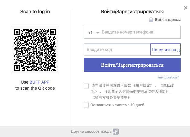 Чтобы пройти регистрацию на сервисе, можно воспользоваться авторизацией через Стим или пройти регистрацию по номеру телефона.