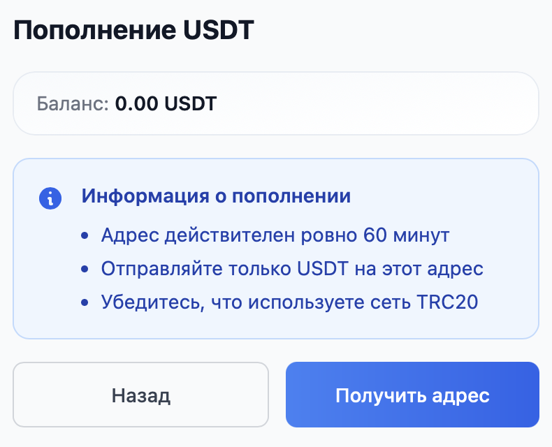 Для покупки и продажи USDT за рубли нужно проходить верификацию, но функции пополнения и вывода работают и без нее. То есть клиенту предлагают внести свои цифровые доллары на аккаунт без дополнительных проверок.