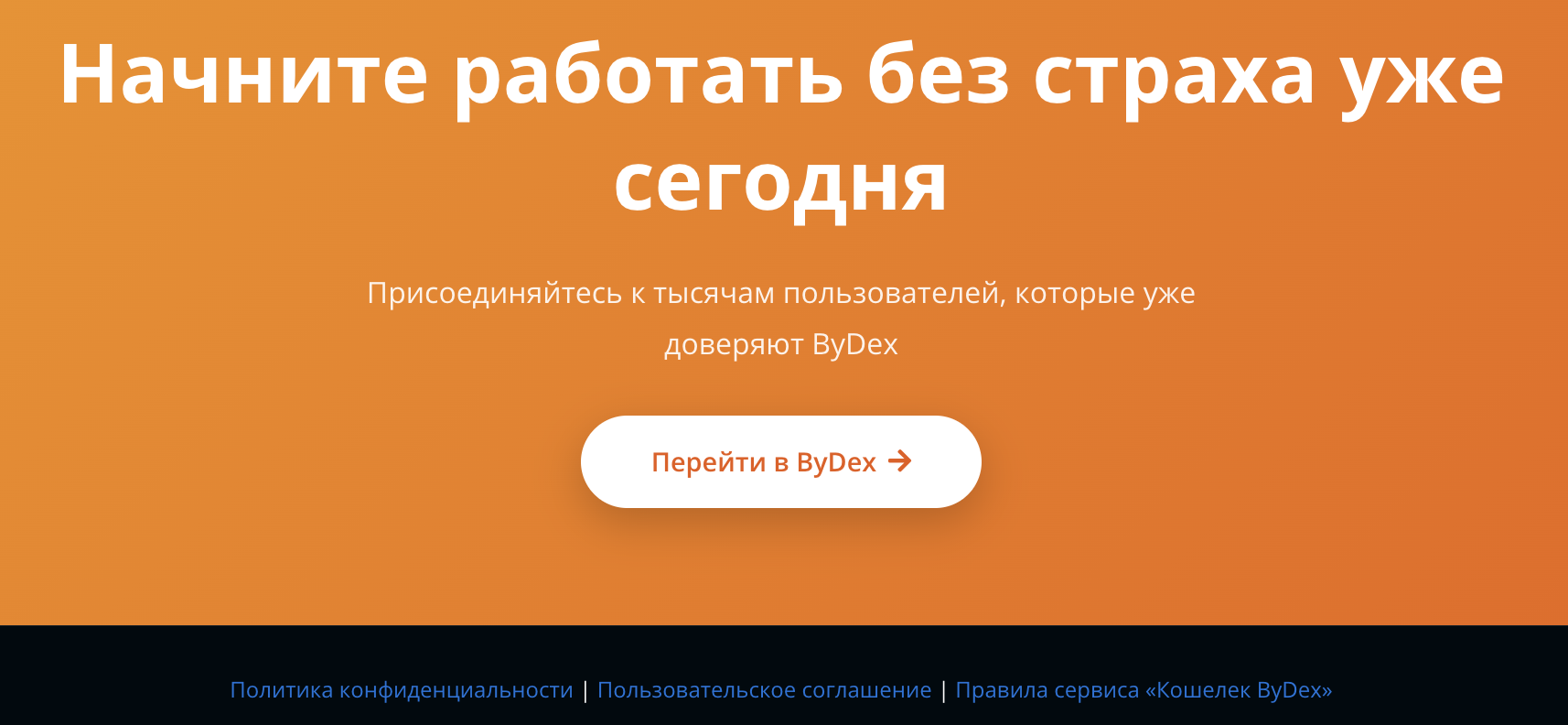 Основной ресурс площадки расположен по адресу Bydex Net и представляет собой максимально примитивный лендинг. Но сами создатели называют свое детище «безопасной гаванью» для покупки и продажи валюты. При этом сайт не похож ни на обычный обменник крипты, ни на биржу для торговли цифровыми монетами.