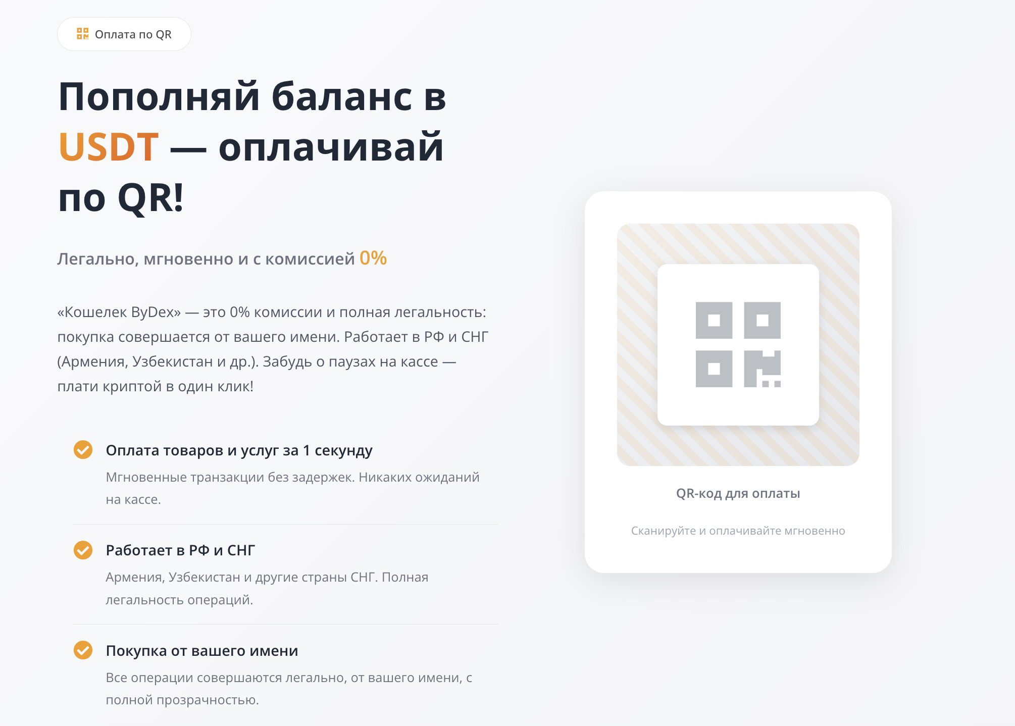 Организаторы обменника «Байдекс» не ограничиваются услугой покупки и продажи USDT за рубли. Они якобы предлагают полноценный кошелек для хранения стейблкоинов. В качестве преимущества своего решения они называют нулевую комиссию, полную легальность, работоспособность в РФ, а также странах СНГ.