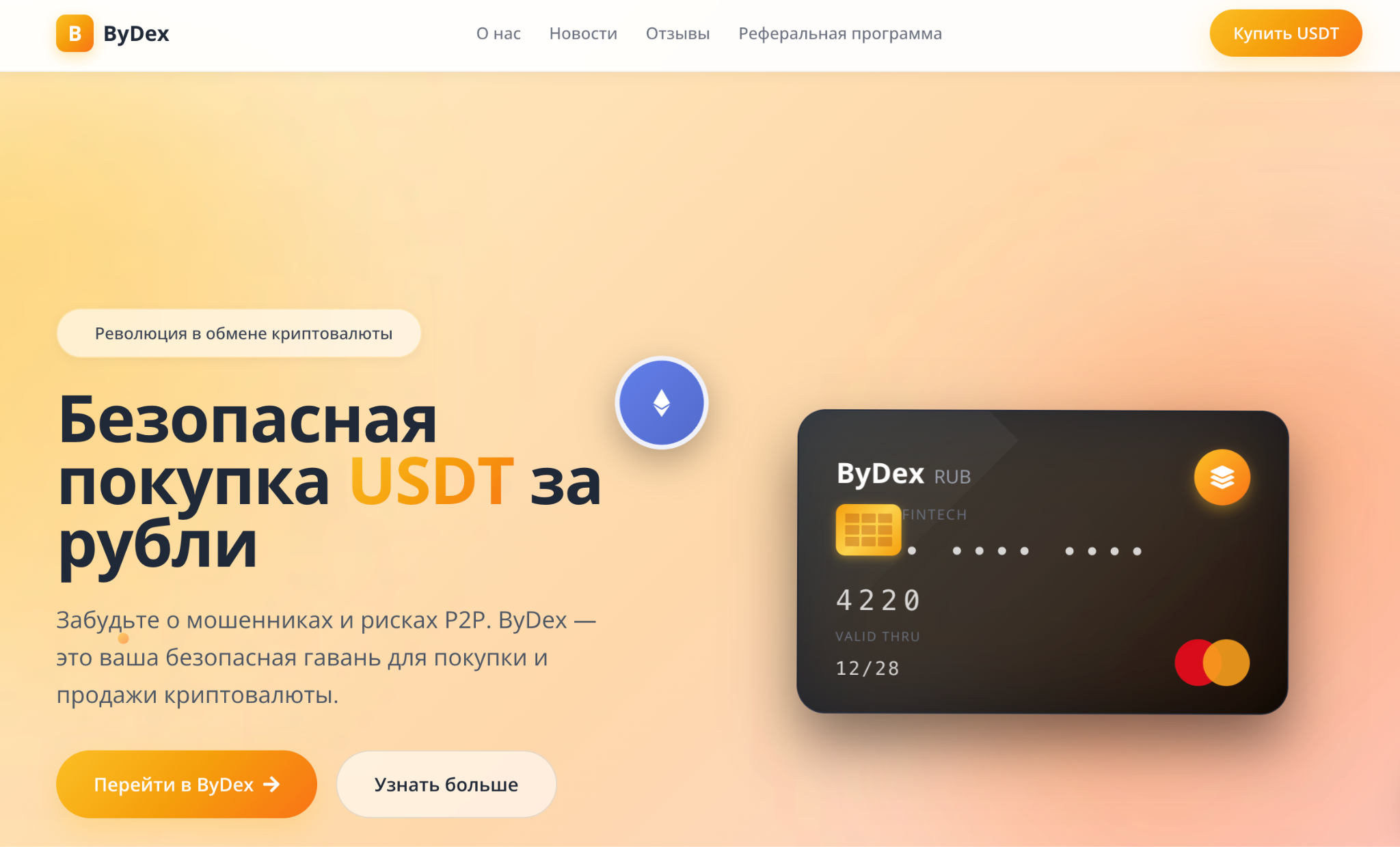 Создатели обменника Bydex предлагают услугу покупки USDT за рубли в обход «мошенников» и «без рисков рынка Р2Р». Более того, они позиционируют «Будекс» как кошелек, где можно безопасно хранить свои цифровые доллары. Но на деле сайт абсолютно не внушает доверия, а разработчики не сделали ничего, чтобы развеять обоснованные сомнения рядового пользователя.
