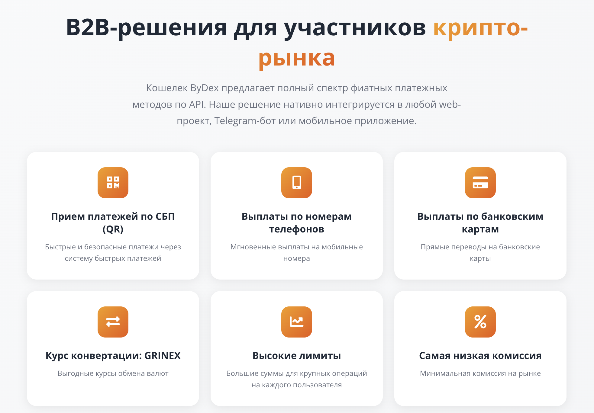 Для В2В-сегмента организаторы предлагают решения, которые позволят принимать фиатные платежи. Вот список преимуществ, о котором мошенники говорят на сайте: