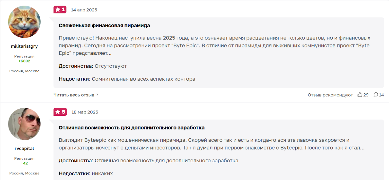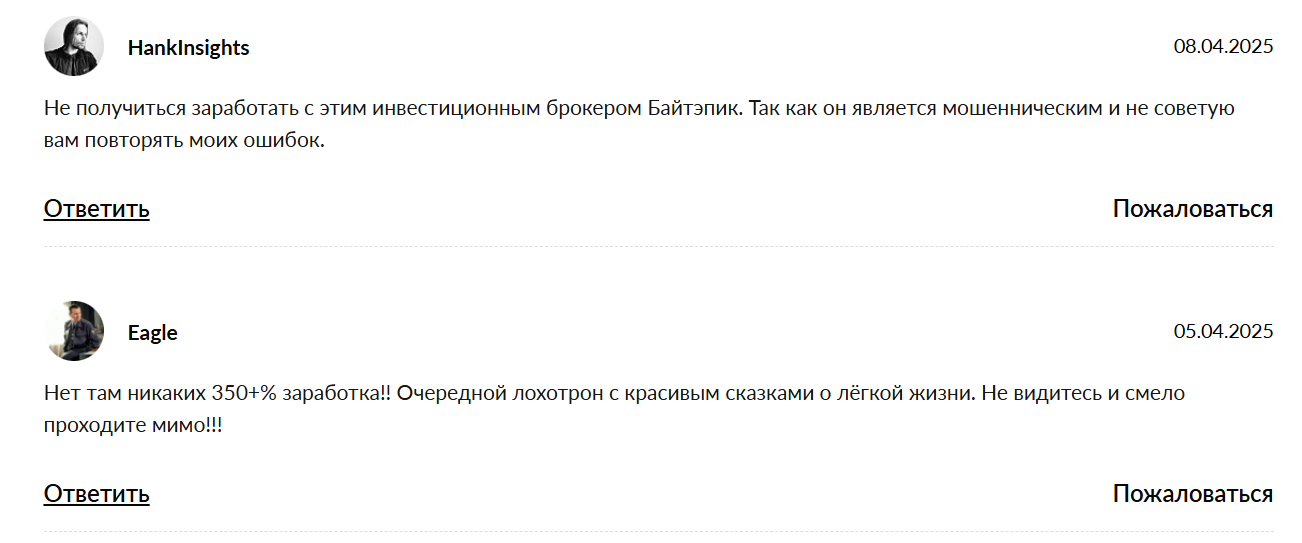 - платформа «Байтепик» отзывы получила только отрицательные.