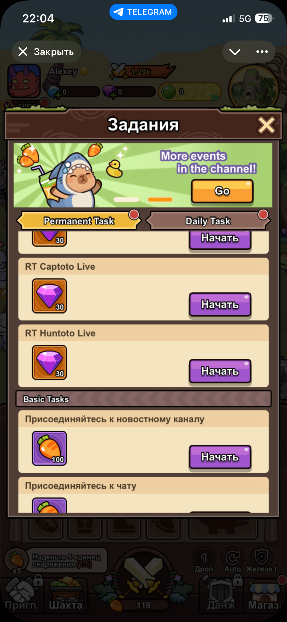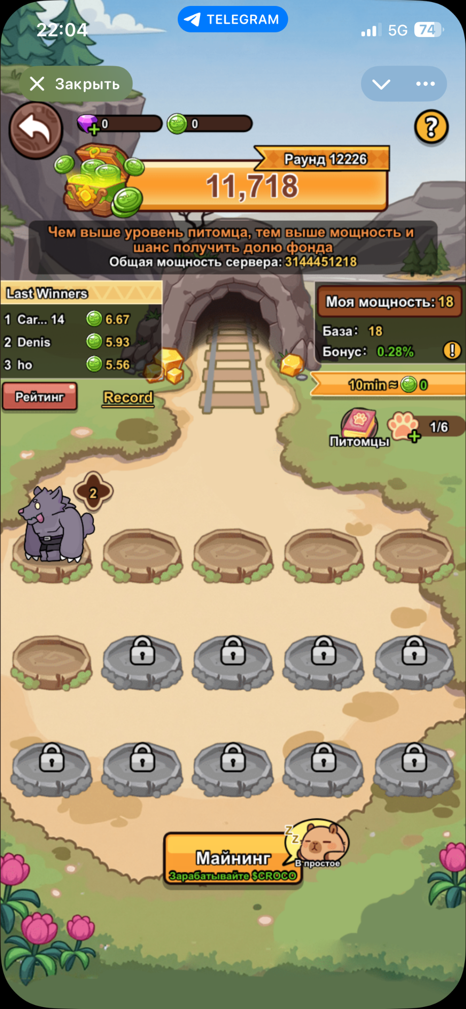 Capybobo2 — игра в Телеграмме, в которой нужно сражаться с монстрами, апгрейдить персонажа, а также собирать и улучшать питомцев. В приложении для активного развития нужно тратить настоящие деньги, вместе с тем разработчики обещают особо упорным юзерам заработок крипты.