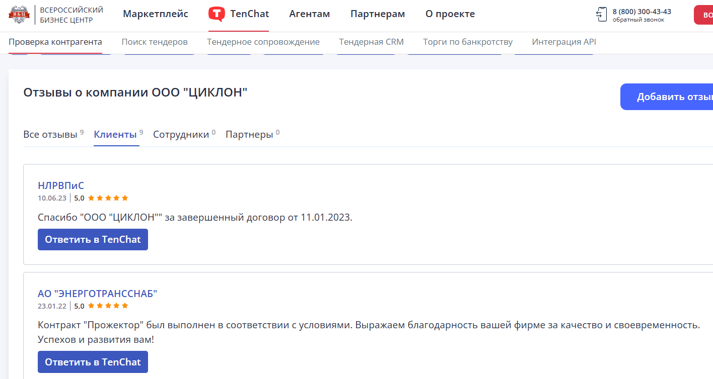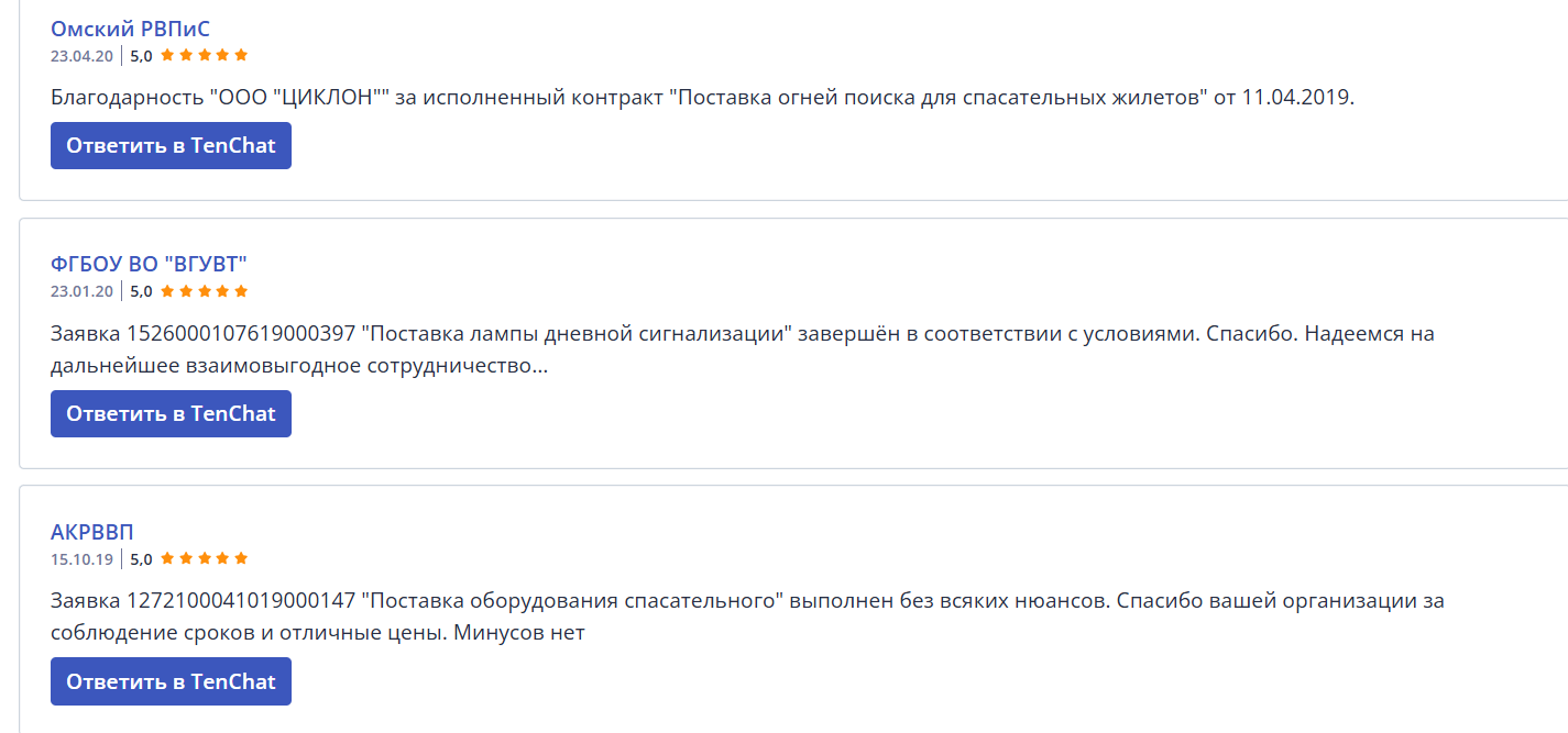 Также есть отзывы от клиентов ООО Циклон – компания Павла выполняла контракты в срок, выступая поставщиком.