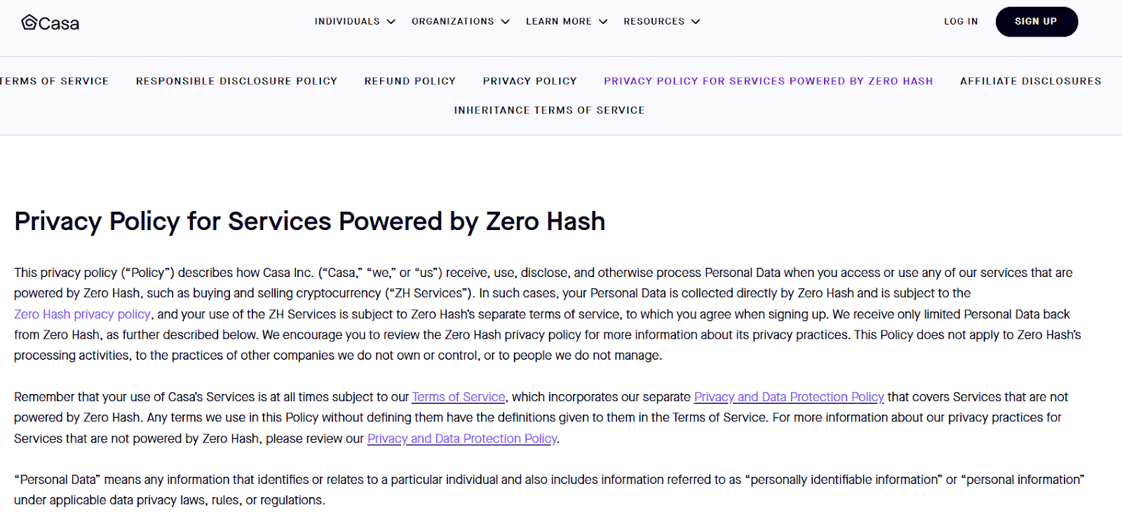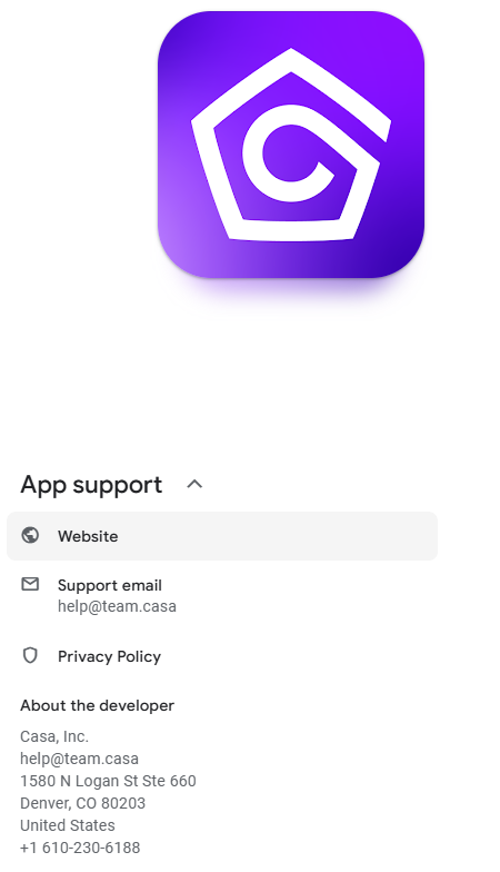 На сайте представлен большой набор внутренних документов сервиса. Только в Политике конфиденциальности указано полное название компании Casa Inc. При этом сведений о стране регистрации, юридическом адресе головного офиса не предоставляется.
