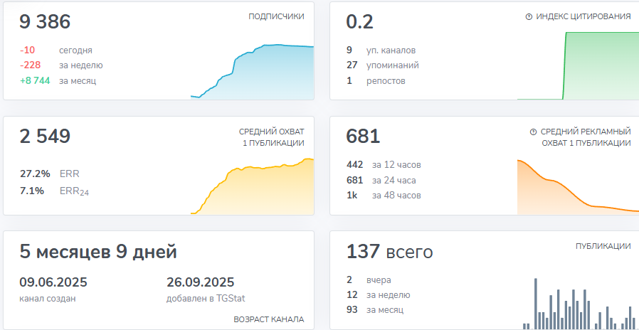 Сейчас на канал подписано 9,3 тысячи человек. Дата создания – 9 июня 2025 года. Активность началась через почти четыре месяца после регистрации. 27 сентября вышел первый пост. Такой разрыв сразу вызывает вопросы.
