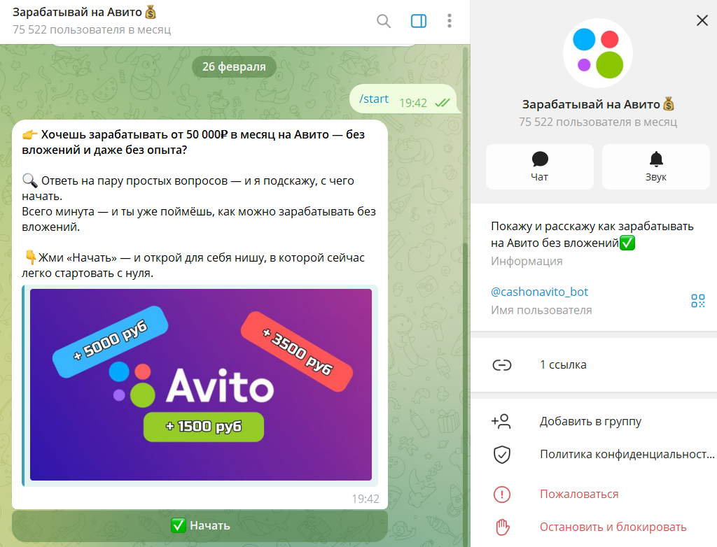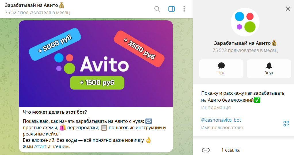Обзор бота CashOnAvito Bot в Телеграмм: отзывы о сервисе «КэшОнАвито», анализ проекта «Зарабатывай на Авито»