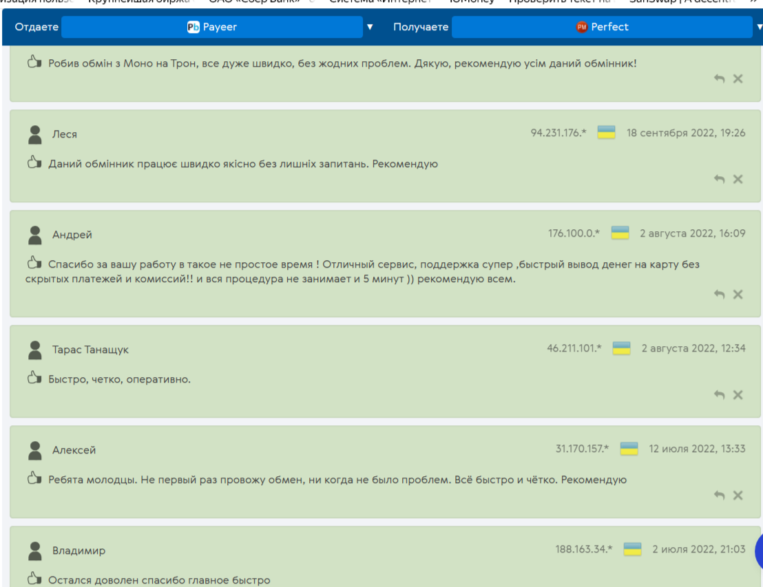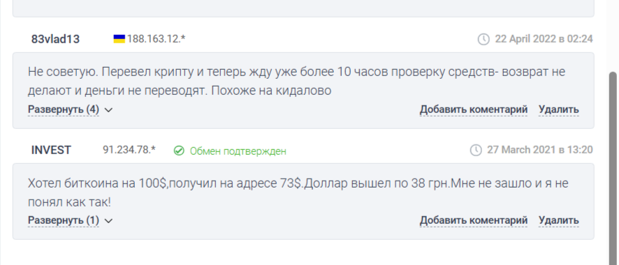 Однако встречаются и отрицательные отзывы. Важно отметить, что большинство недовольных клиентов совершали обмен онлайн, за пределами Украины. В их откликах встречаются жалобы на дополнительную комиссию, задержки с получением денег.
