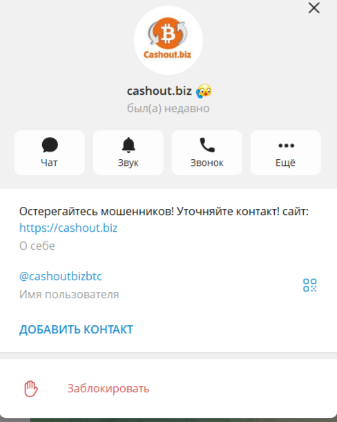 - написать на аккаунт Cashoutbizbtc Телеграме;