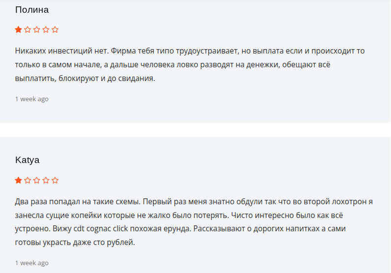 - Негативный бэкграунд. Отзывы о сайте https cdt cognac click tac от реальных пользователей только отрицательные — жалобы на развод.