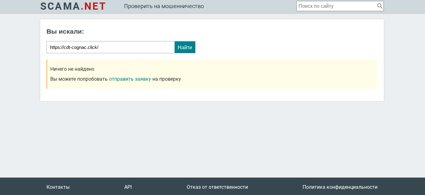 Следующий инструмент — Scama net. Проверка CDT Cognac Click Tac показала, что сервис пока еще не попал в реестры как мошеннический. Однако зачатки, судя по негативной репутации в сети, все же есть. Кроме того, у нас на сайте вы можете знакомиться с более чем 100 разборами аналогичных платформ — читайте и получайте защиту от развода.