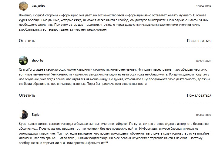 Специально по этому курсу отзывов пока нет — программа свежая. Но о других продуктах Гогаладзе оставлено достаточно комментариев, в них пользователи отмечают: