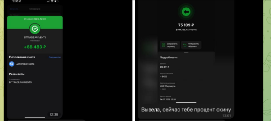 В качестве отзывов на телеграмм-канале «Цифровое Золото | Дыхание Рынка» встречаются публикации автора со скриншотами денежных переводов якобы довольным клиентам и их ответы со словами благодарности.