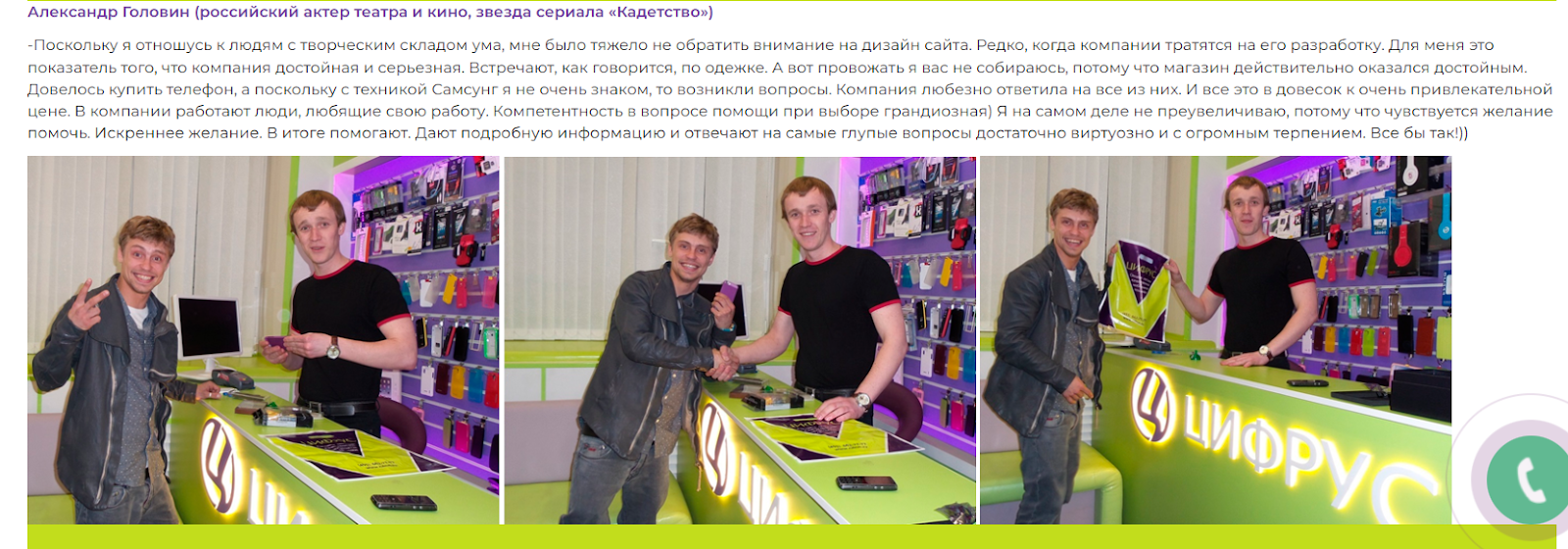 Положительные отзывы есть только на самом сайте организации. Мало того, заявлено, что магазин посещают настоящие звезды кино и эстрады. Оставить свой отзыв обычный посетитель сайта не может – отсутствует необходимое для заполнения поле.