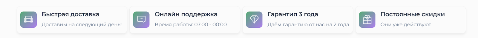 Онлайн-магазин обещает быструю доставку – уже на следующий день после оформления заказа. Служба поддержки работает ежедневно, с 07:00 до 00:00 – обратиться к специалистам можно через тг-канал «Цифрус». На все товары дается гарантия на три года по умолчанию и дополнительно на два от самой компании – бесплатное сервисное обслуживание.