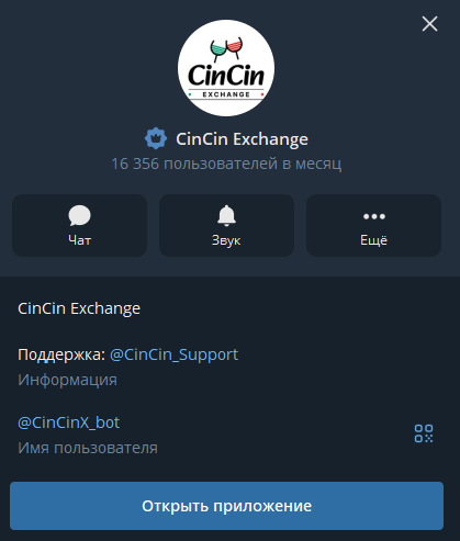 Возможно, разработчики рассчитывали на то, что никто не будет перепроверять информацию. Оказалось, блогеры рекламируют не CinazesCard, а некую CinCin Exchange. Это же название упоминают и на сайте, однако речь идет не про ребрендинг, как кто-то мог бы подумать. Ссылка под видео ведет на совершенно другой бот. Да, у него тоже около 16 тыс. юзеров за последний месяц, однако сервисы не имеют между собой ничего общего.