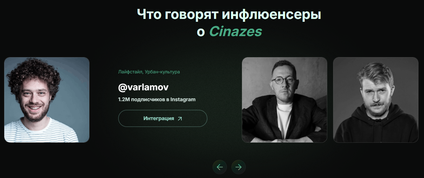 Скорее всего, взаимодействие с Chinazes Card закончится потерей денег, и такой вывод мы сделали не на пустом месте. Если вернуться на официальную платформу. то можно увидеть имена популярных инфлюенсеров и слова о том, что те рекламируют описываемый сервис. Даже есть соответствующие ссылки на интеграции, с которыми наша редакция решила ознакомиться.