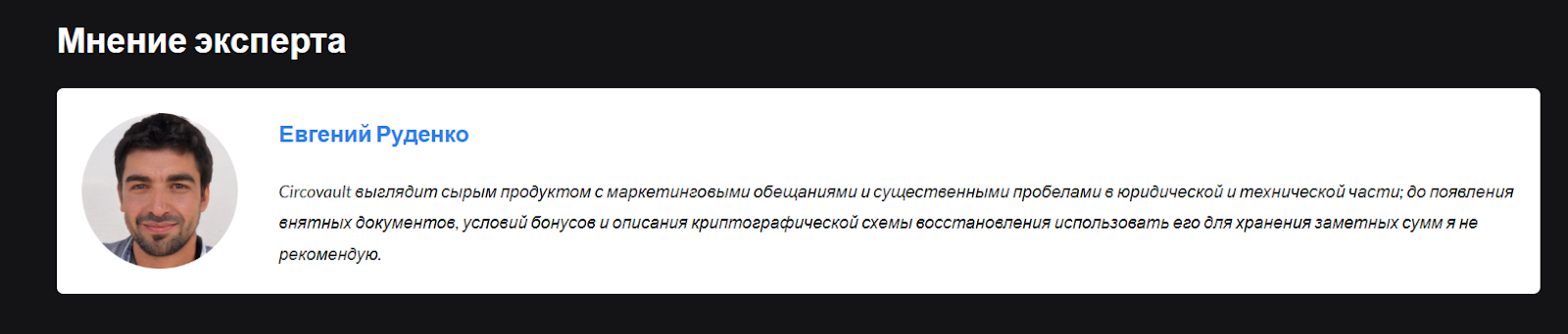 Как таковых отзывов на декабрь 2025 года нет, что неудивительно для сервиса с опытом обслуживания в три месяца. Тем не менее крипто-кошелек Circovault привлек внимание некоторых экспертов в вопросах торговли криптой.