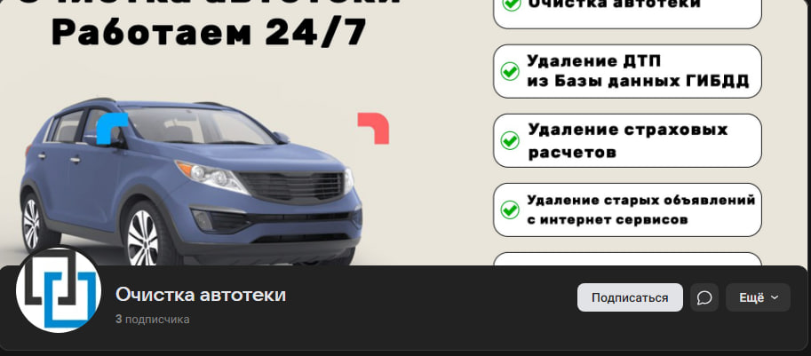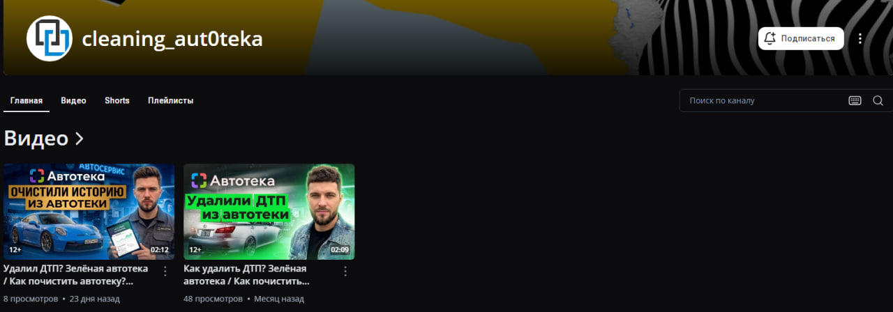 Кроме телеграм-канала «Клининг Автотека», владельцы зарегистрировали ВК сообщество. На него подписано 3 подписчика и есть один единственный пост. В нем просто представлены услуги создателей проекта. Также есть канала на РуТубе. Месяц назад там выложили 2 видео. У них похожие темы про очищение автотеки от ДТП. Больше выпусков не было, а эти не набрали популярности.