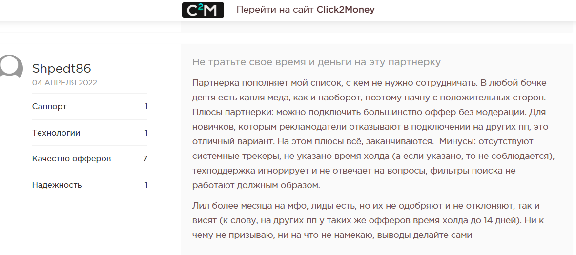 Также есть истории о зависающих лидах, которые не подтверждаются и не отклоняются месяцами, из-за чего вебмастеры не могут планировать бюджет и стратегию.