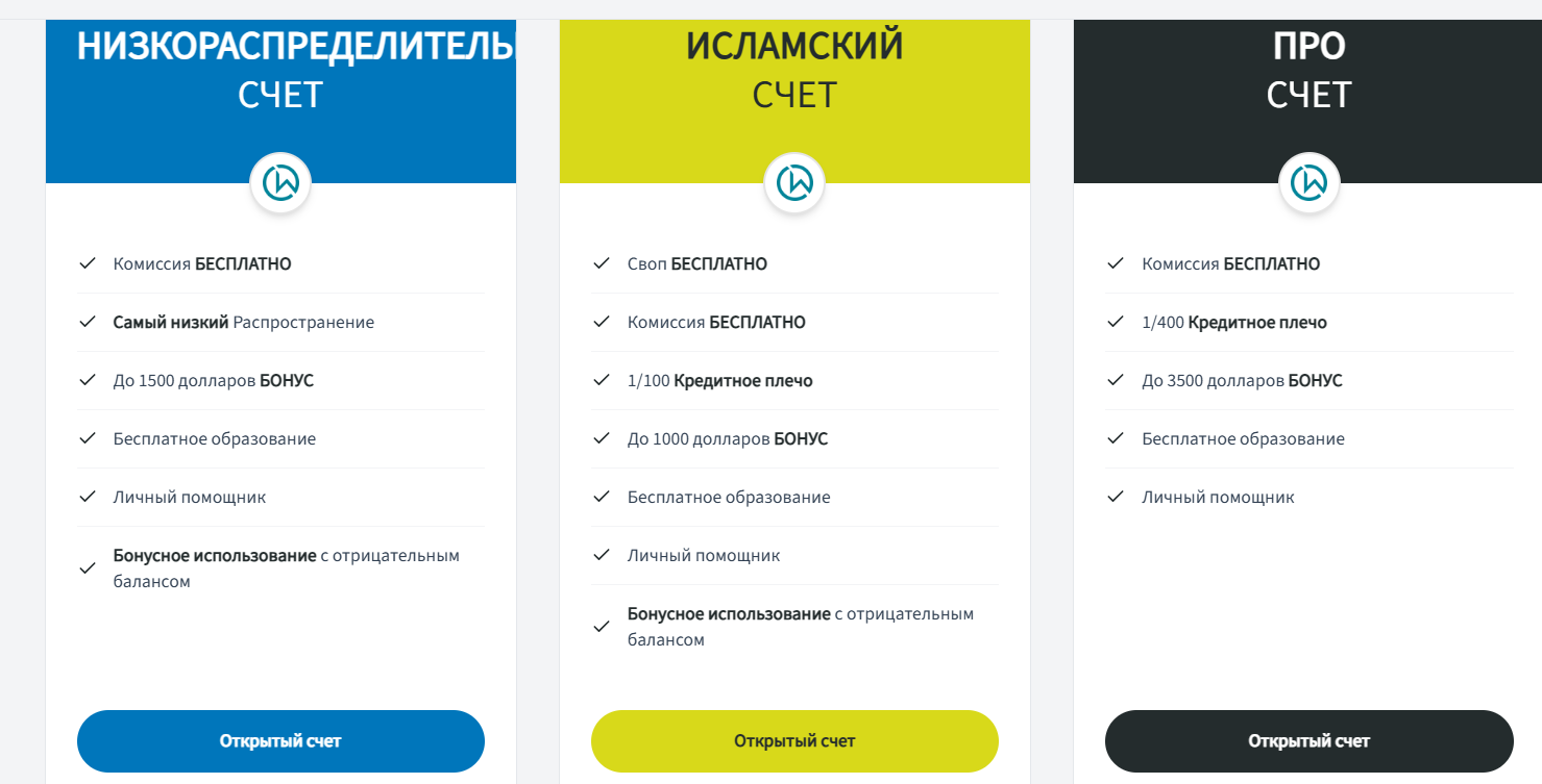 На сайте сказано, что клиенты брокера могут покупать и продавать не только монеты и валюты, но и контракты на энергоносители, металлы и индексы. Людям предлагают выбрать один из трех счетов – «Базовый», «Про» и «Исламский» с разным кредитным плечом от 100 до 500. Комиссии с клиентов здесь якобы не берут, а при пополнении дают бонусы от $1,000 до $3,500.