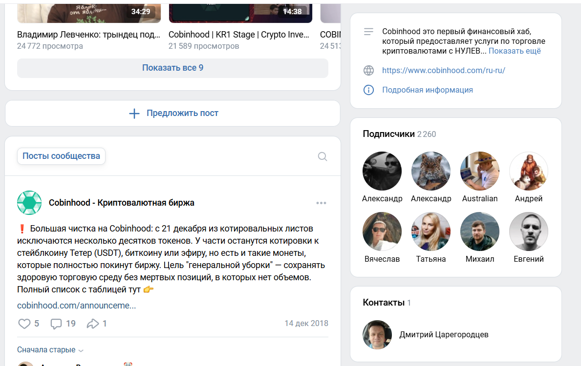 У организации остался аккаунт в ВК cobinhood exchange rus. Незадолго до закрытия команда заявила о технических проблемах и перестала выплачивать средства. Несмотря на перспективность и официальной регистрации, компания ушла с рынка как откровенный скам.