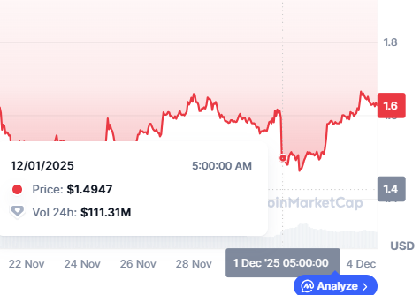 После полноценного старта «Кокун» стоимость криптовалюты TON снова начала расти. По состоянию на 4 декабря 2025 года монета торгуется по цене около 1,62 USD. По данным сервиса технического анализа данных CoinDesk Research, объем торгов подскочил до 2,95 млн, что на 37% больше среднего недельного значения в предыдущих периодах.
