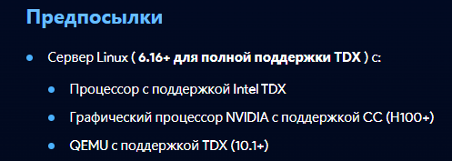 - QEMU с поддержкой TDX (10.1+).