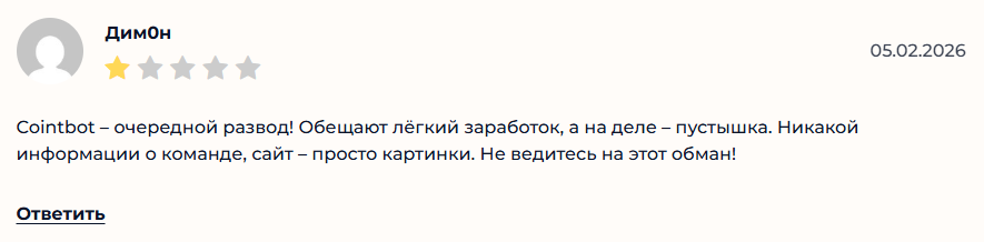 В отзывах о Coin Bot пользователи высказывают критику. Они указывают, что проект не оправдывает заявленные ожидания, а функционал не соответствует обещаниям по легкому заработку и эффективному управлению чатами.
