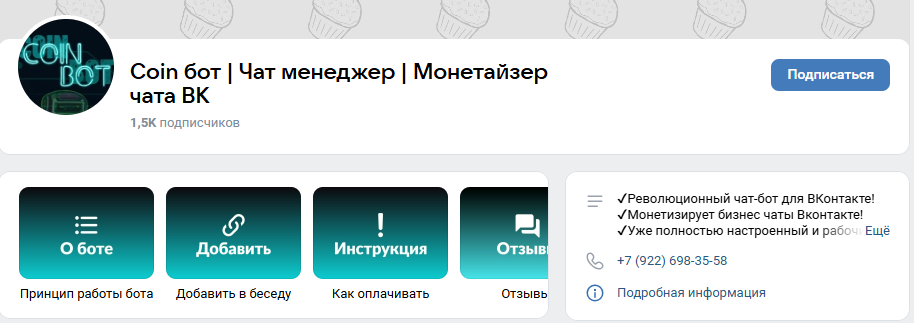 С учетом слабой информационной базы, отсутствия подтвержденной репутации и минимального уровня публичной отчетности Coin Bot не может рассматриваться как надежный инструмент для системной монетизации чатов и автоматизации работы сообществ во ВКонтакте.