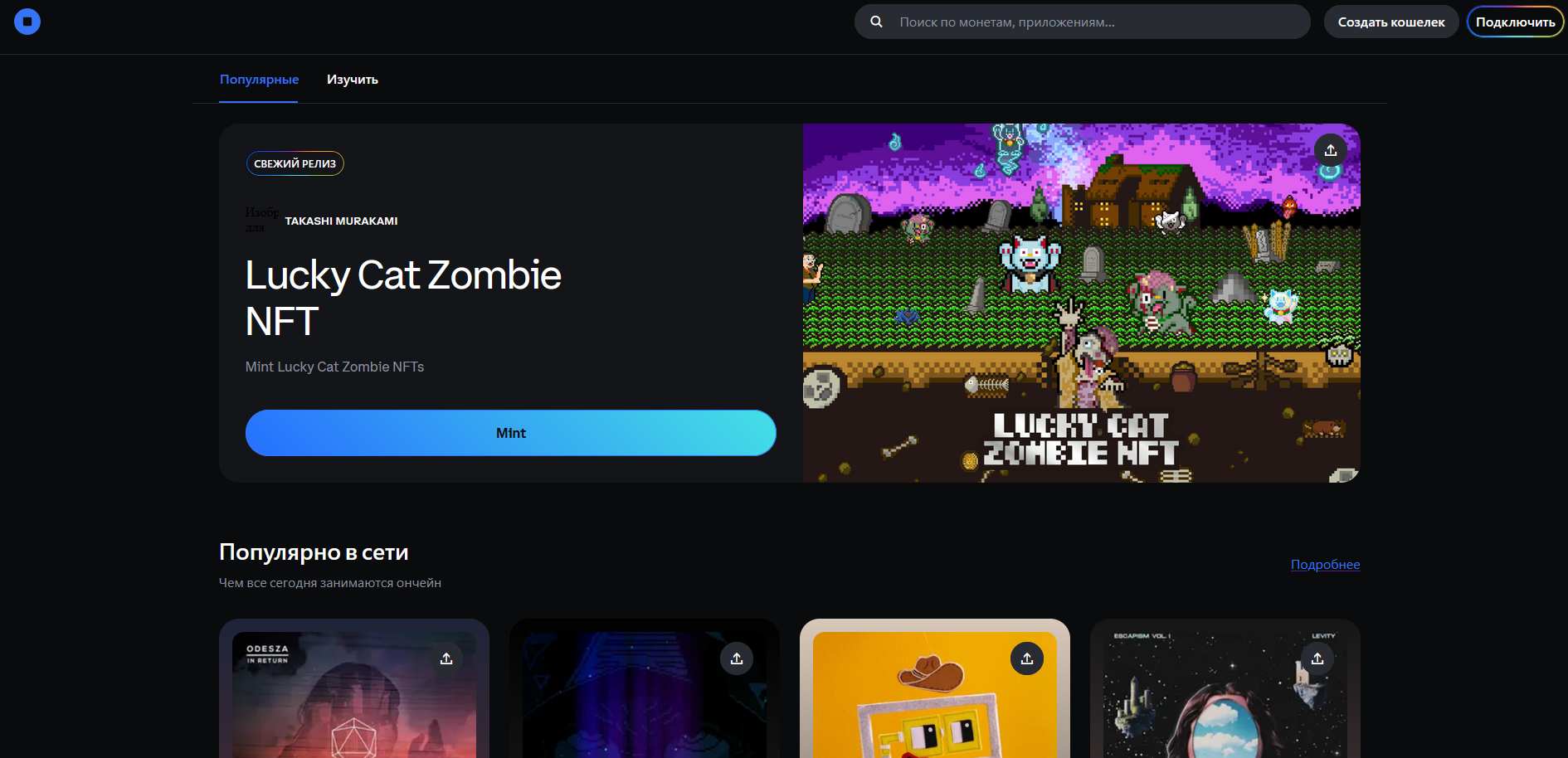 Теперь это скорее агрегатор, где каждая коллекция представлена лишь ссылкой, которая ведет на сторонний ресурс. Это Coop Record, Magic Eden, Kaikaikiki и другие площадки, название зависит от конкретной коллекции.