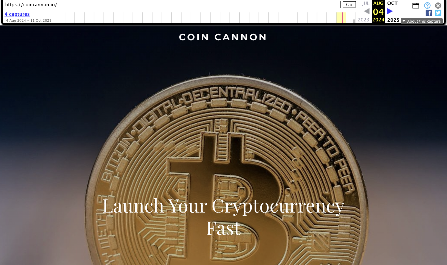 В «Веб-архиве» есть всего несколько снэпшотов сайтов, которые располагались по адресу coincannon io. Первый из них датированы августом 2024-го года. На них отображается ресурс какого-то лаунчпэда.