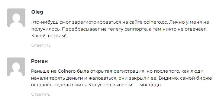 Криптобиржа Coinero: отзывы трейдеров