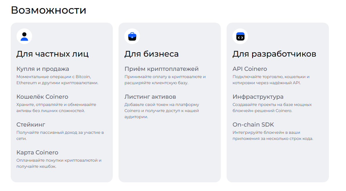 Услуги и особенности торговли на бирже «Коинеро»