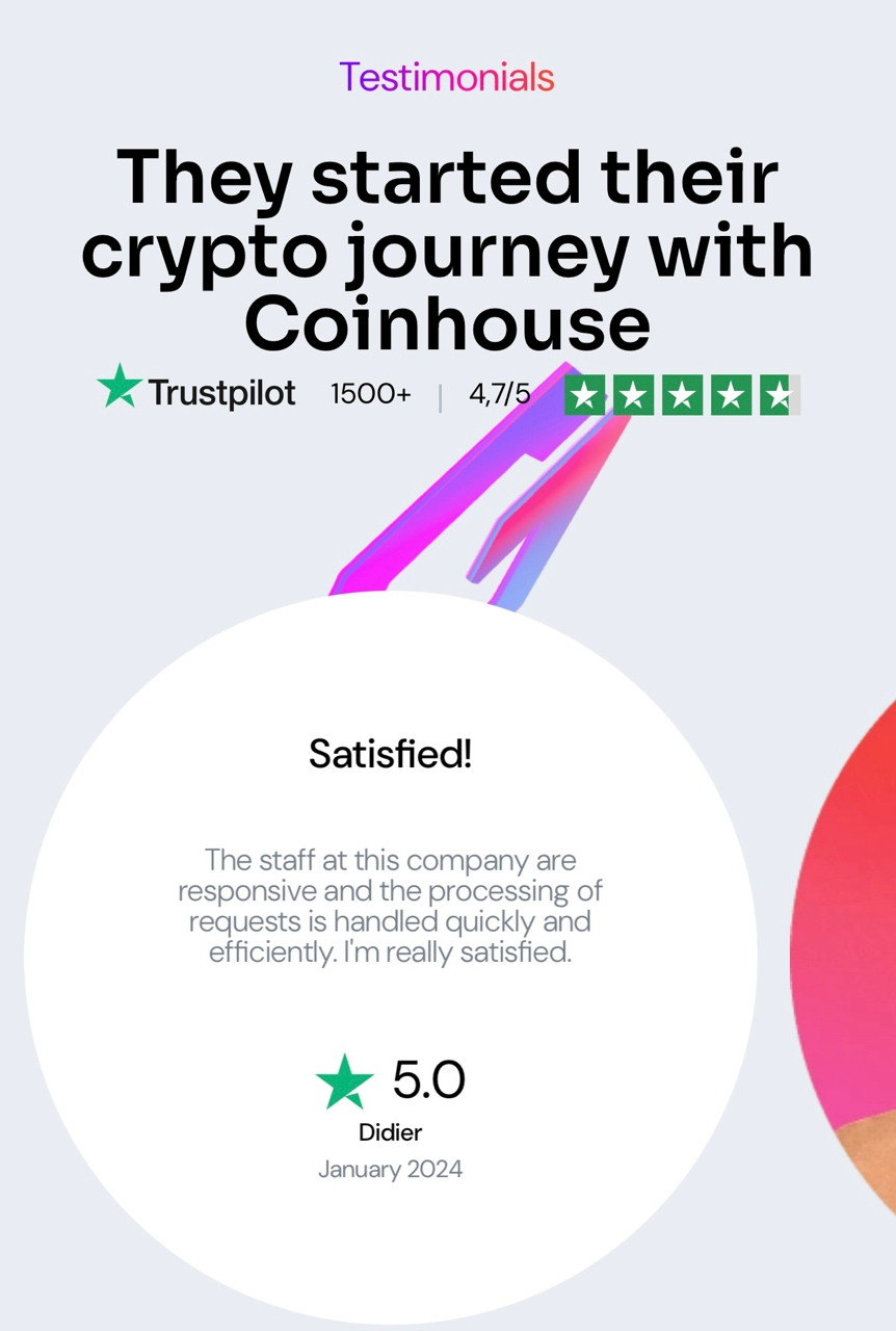 В Европе репутация Coinhouse неплохая. На площадке TrustPilot рейтинг биржи довольно высокий и многие трейдеры дают высокую оценку.